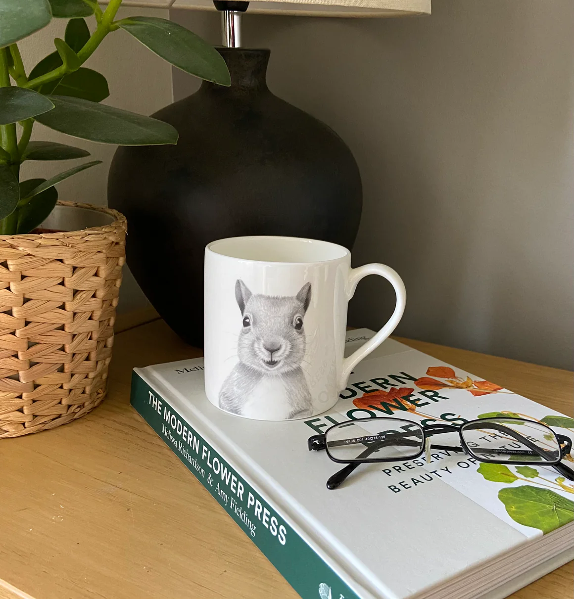 Treat yourself or gift to someone special this adorable Cheeky Squirrel China Mug designed by Katherine Sheard, beautifully screen printed from original hand drawn pencil artwork.