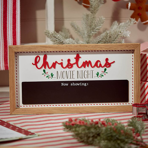 Make your Christmas movie nights even more special with this charming Christmas Movie Night Chalkboard. The perfect decoration to turn your festive movie night into a special event for the whole family. Can be placed standing or hung up.