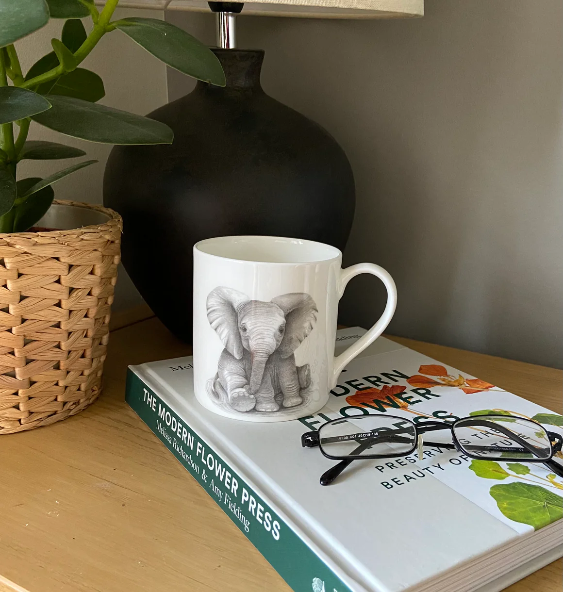 Treat yourself or gift to someone special this delightful Elsie Elephant China Mug designed by Katherine Sheard, beautifully screen printed from original hand drawn pencil artwork.