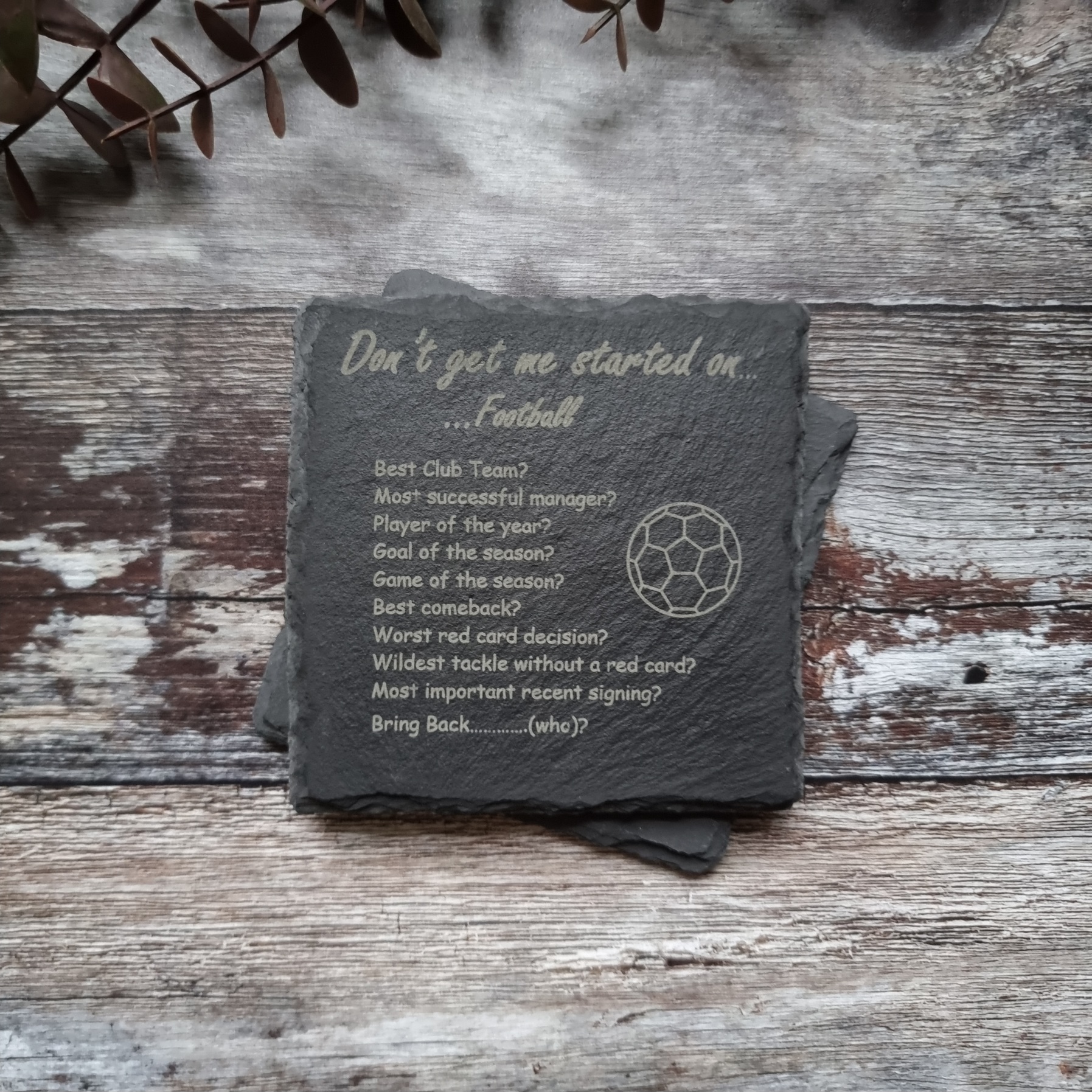 These custom made natural slate coasters are great conversation starters and make an excellent gift for any occasion. Designed and engraved by ourselves.