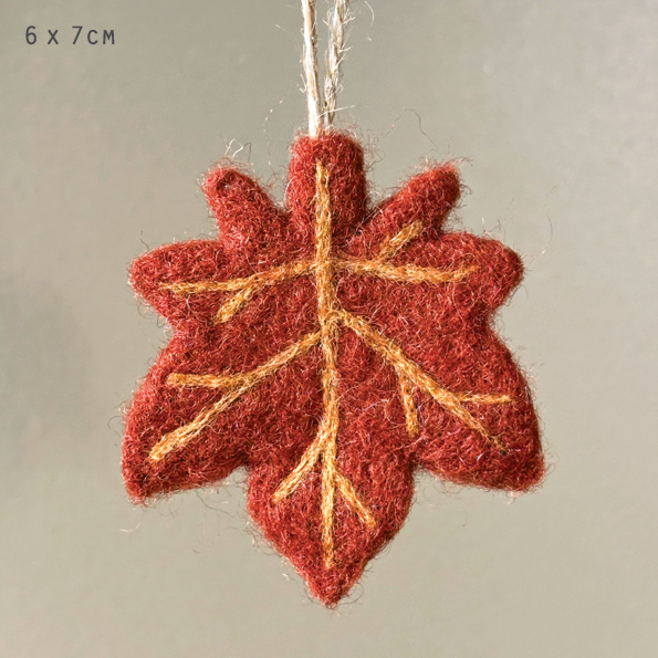 This Hanging Felt Autumn Leaf Decoration captures the natural beauty and the warm cosy feelings of the season. The perfect home decor accessory to add some autumn charm to your living space.