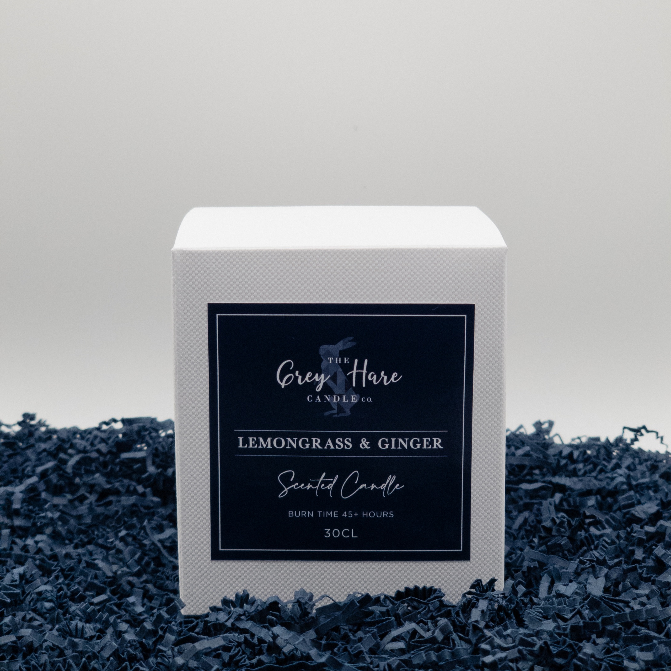 The fragrance is initially characterised by a zingy, citrusy mix of lemongrass, Sicilian lemons and juicy limes bringing a sense of freshness to the aroma. A spicy heart awaits where the spicy ginger root and grated nutmeg mix with a hint of eucalyptus to enhance mood-boosting vibes. The sensual base fragrance of patchouli, white woods and creamy vanilla finish off the fragrance with a warming touch. Made using a natural wax blend of coconut, rapeseed and soy wax. Comes complete in a 30cl white gloss jar in a luxury white textured box with liner.