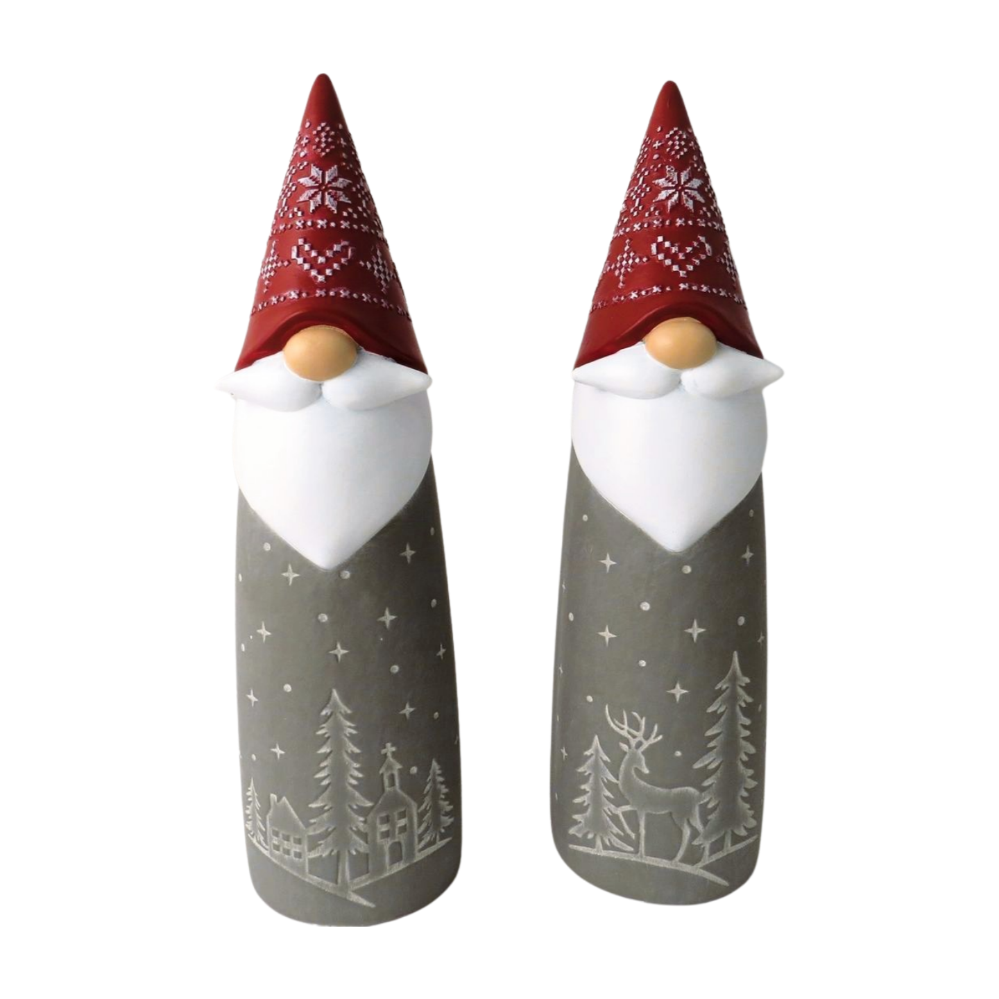 This Grey and Red Resin Santa Gonk would bring some added flair to your Christmas season! This funky standing Santa is the perfect decoration for your christmas ensemble.