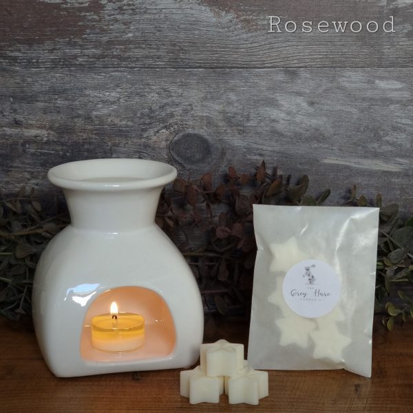 Citrus top notes with pear and armoise lead into a heart of amber, English lavender, and jasmine which lie on a base of sandalwood, musk, and vanilla. Made using a natural wax blend of coconut, rapeseed and soy wax. You will receive 6 Rosewood scented wax melts in a small biodegradable glassine bag.