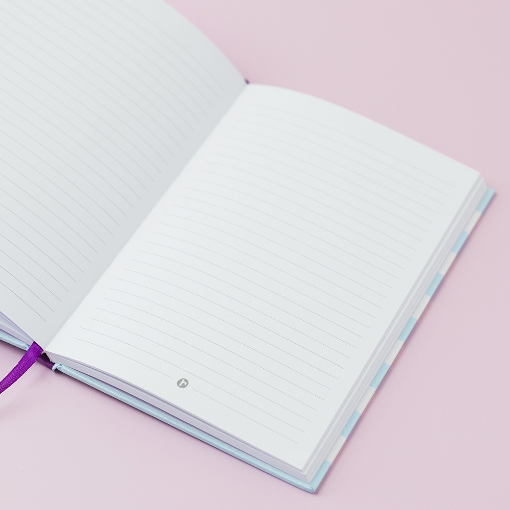 A5 lined Rosie Made A Thing Notebook with a hardback cover and a ribbon markers for all your note making needs. 100gsm lined paper inside.